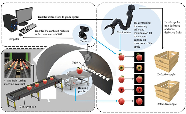 - Multiple cameras may be used to capture different angles of the fruit to get a complete view.