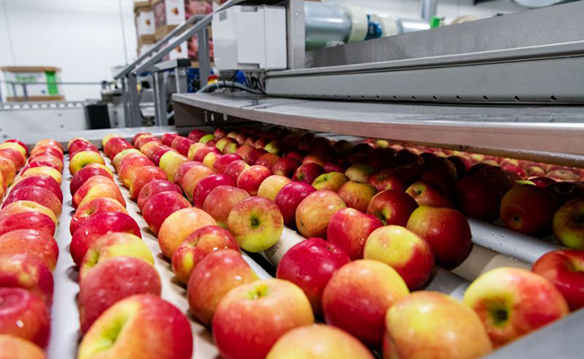 - Bursts of air are used to push the fruits into different bins